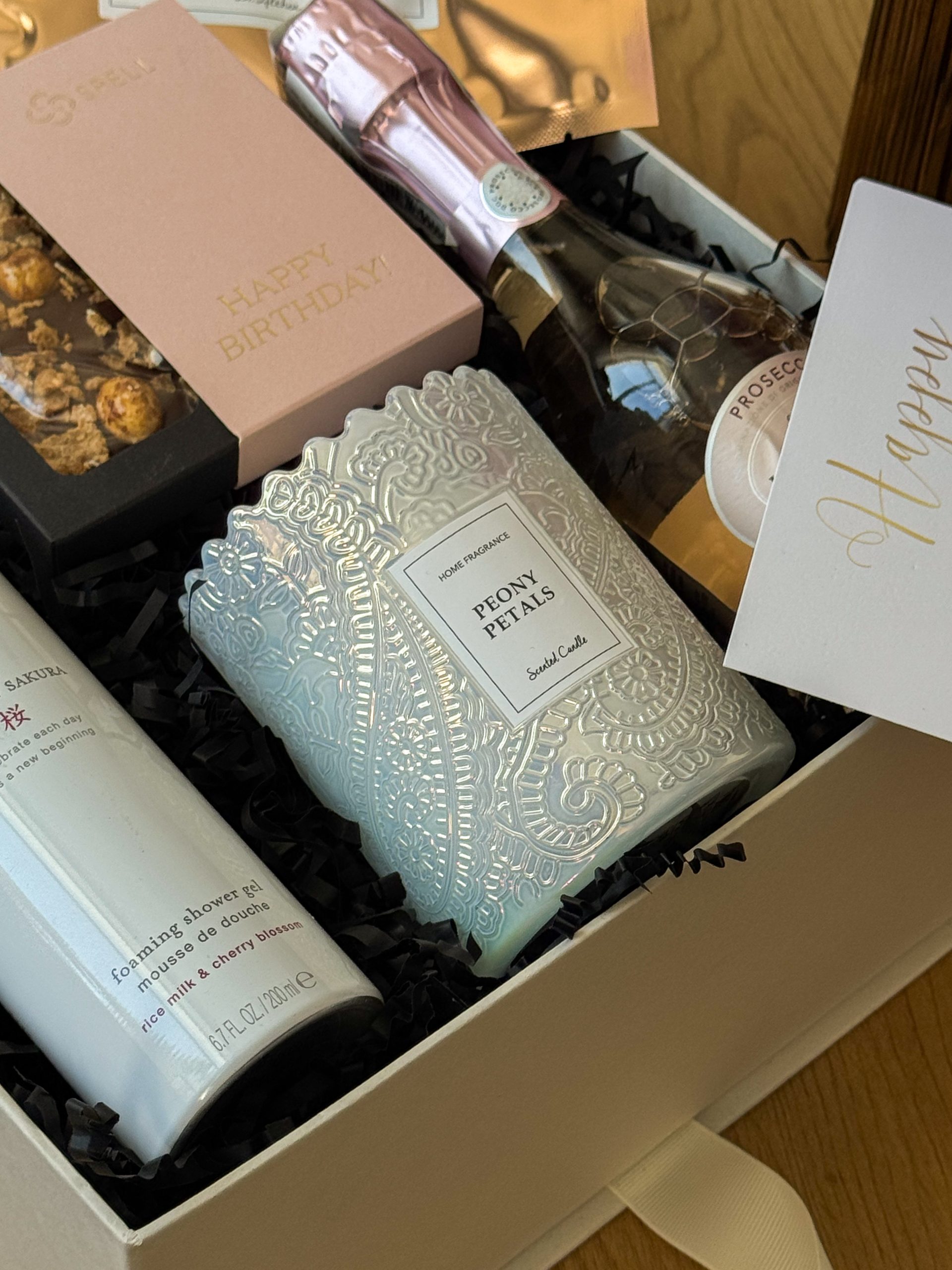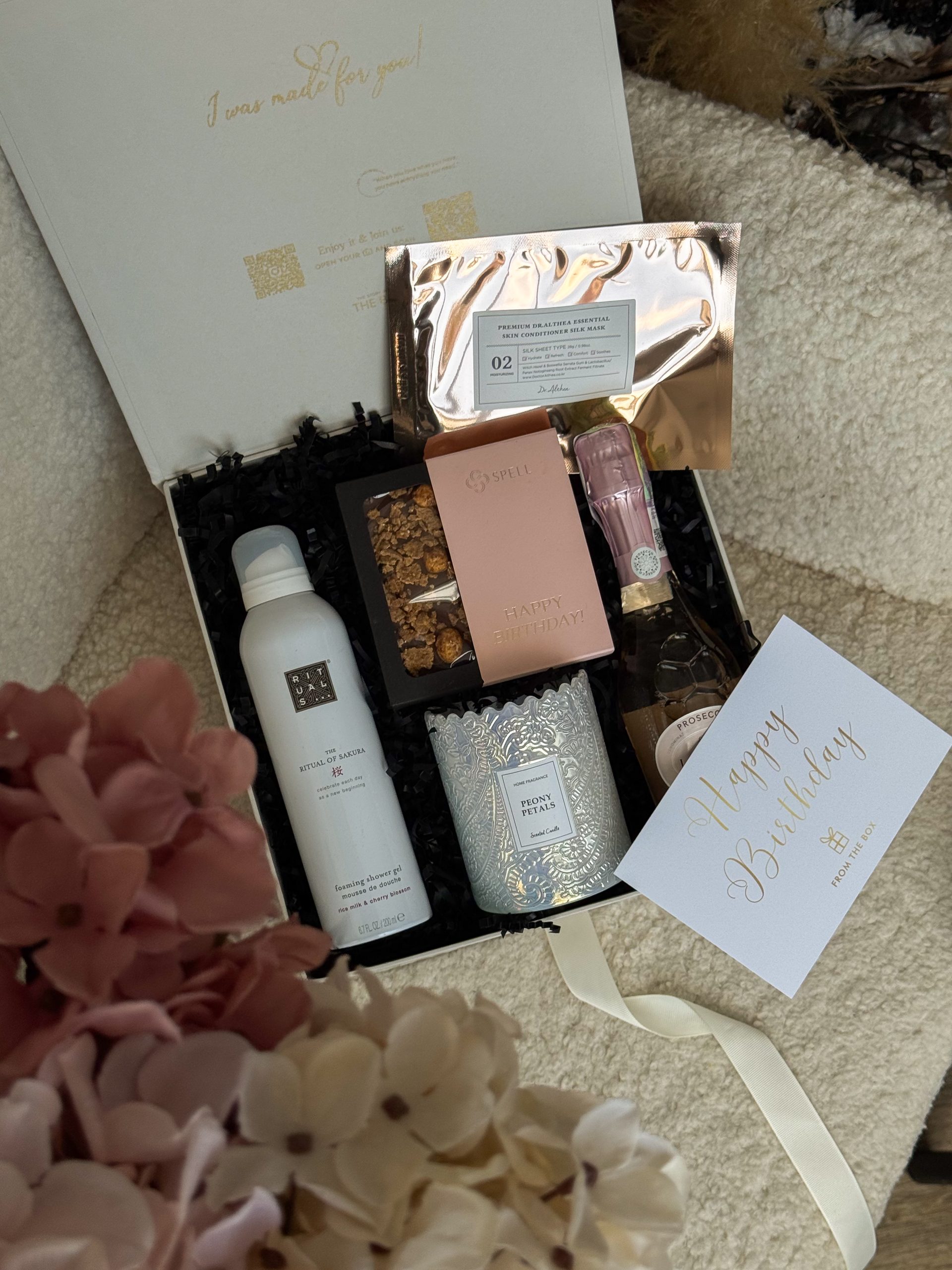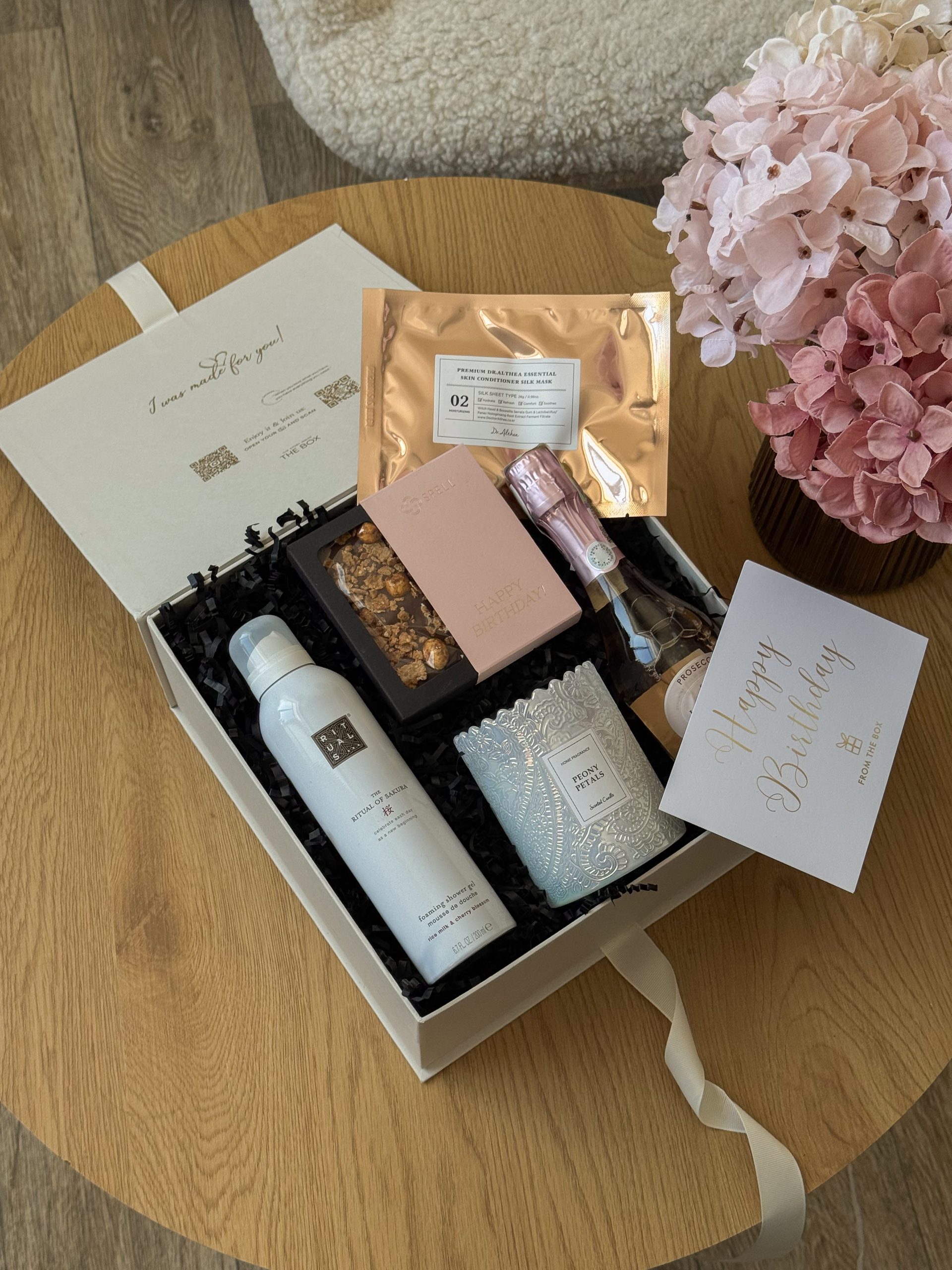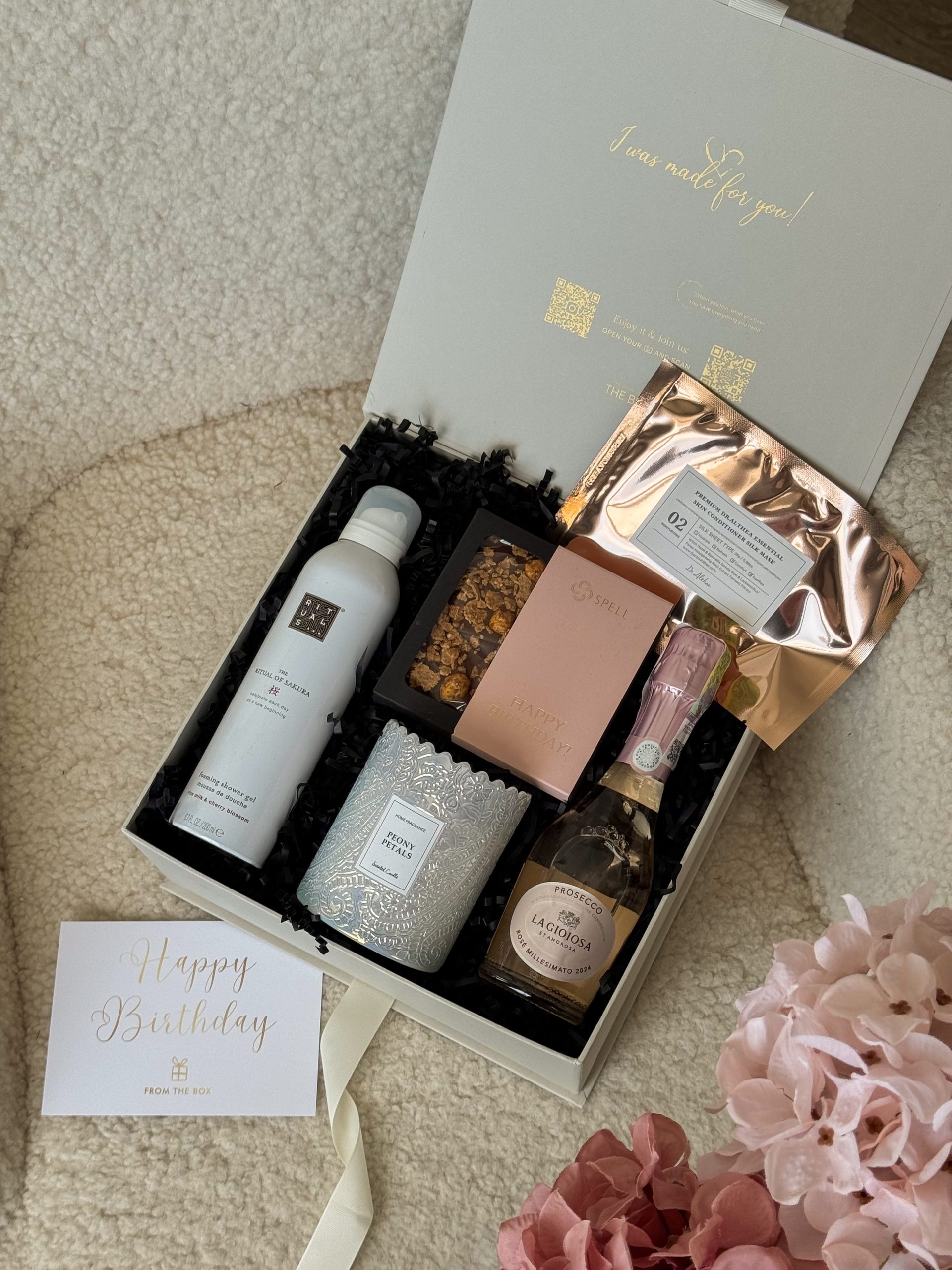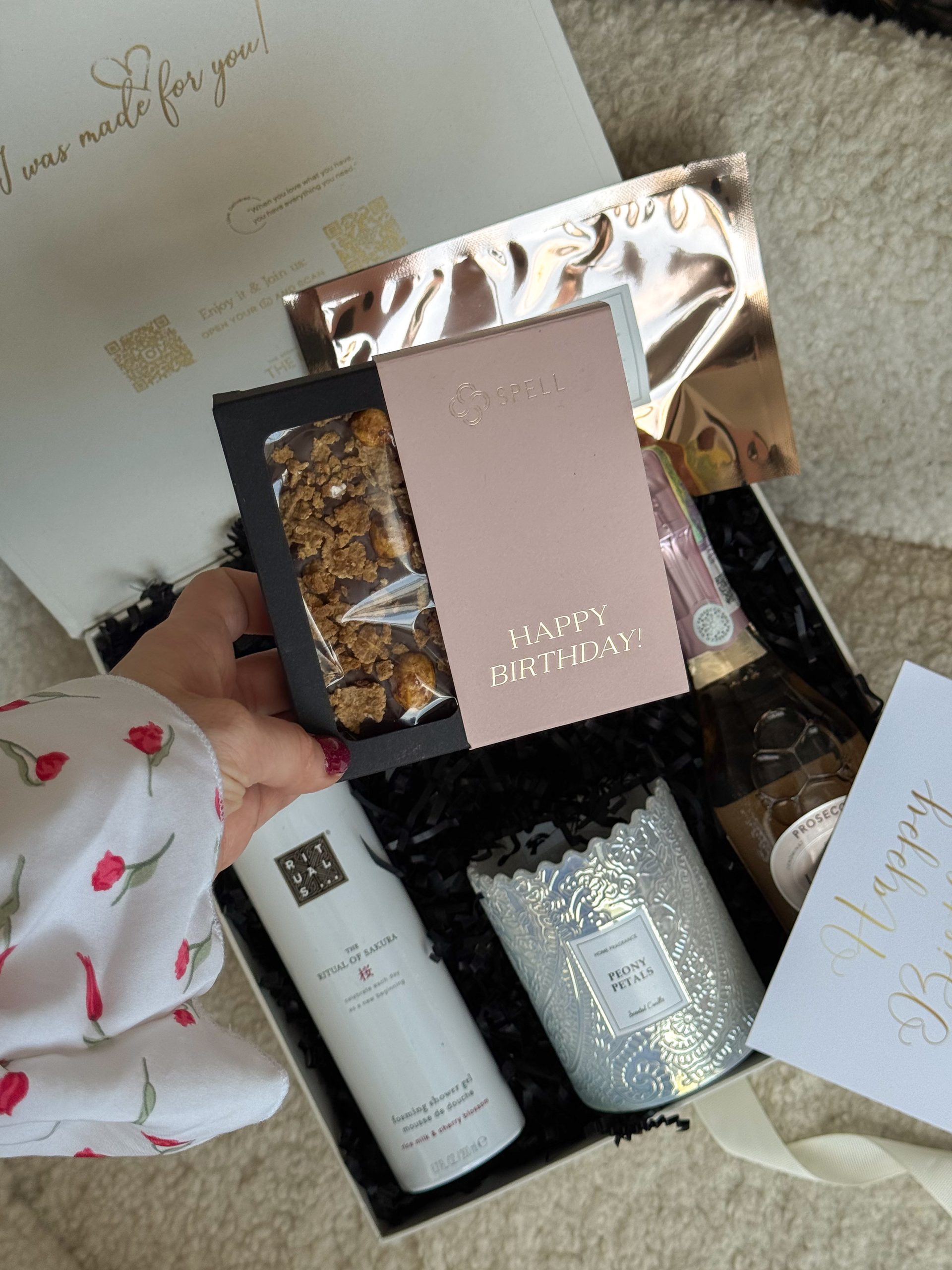 Як не банально привітати з днем народження? У цьому вам допоможе жіночий подарунковий набір “B-DAY QUEEN”. Дійсно ідеальний вибір для ювілеїв, святкувань та для привітань на відстані. Родзинкою стане шоколадка від SPELL із надписом “Happy Birthday!”. Іменинниця буде у захваті і від ніжної гель-пінки для душу від культових Rituals. А келих рожевого ігристого та квіткова ароматична свічка наповнять отримувачку приємними sparkling-емоціями! Роздивимося детальніше наповнення?