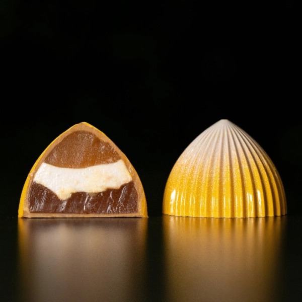 3. Шипот. Хвилі солоної карамелі нагадують струмені казкового водоспаду Шипот у золотому літньому сонці. Під солоною карамеллю розкривають свої смаки спокусливе бананове суфле та ніжний ганаш на молочному шоколаді.