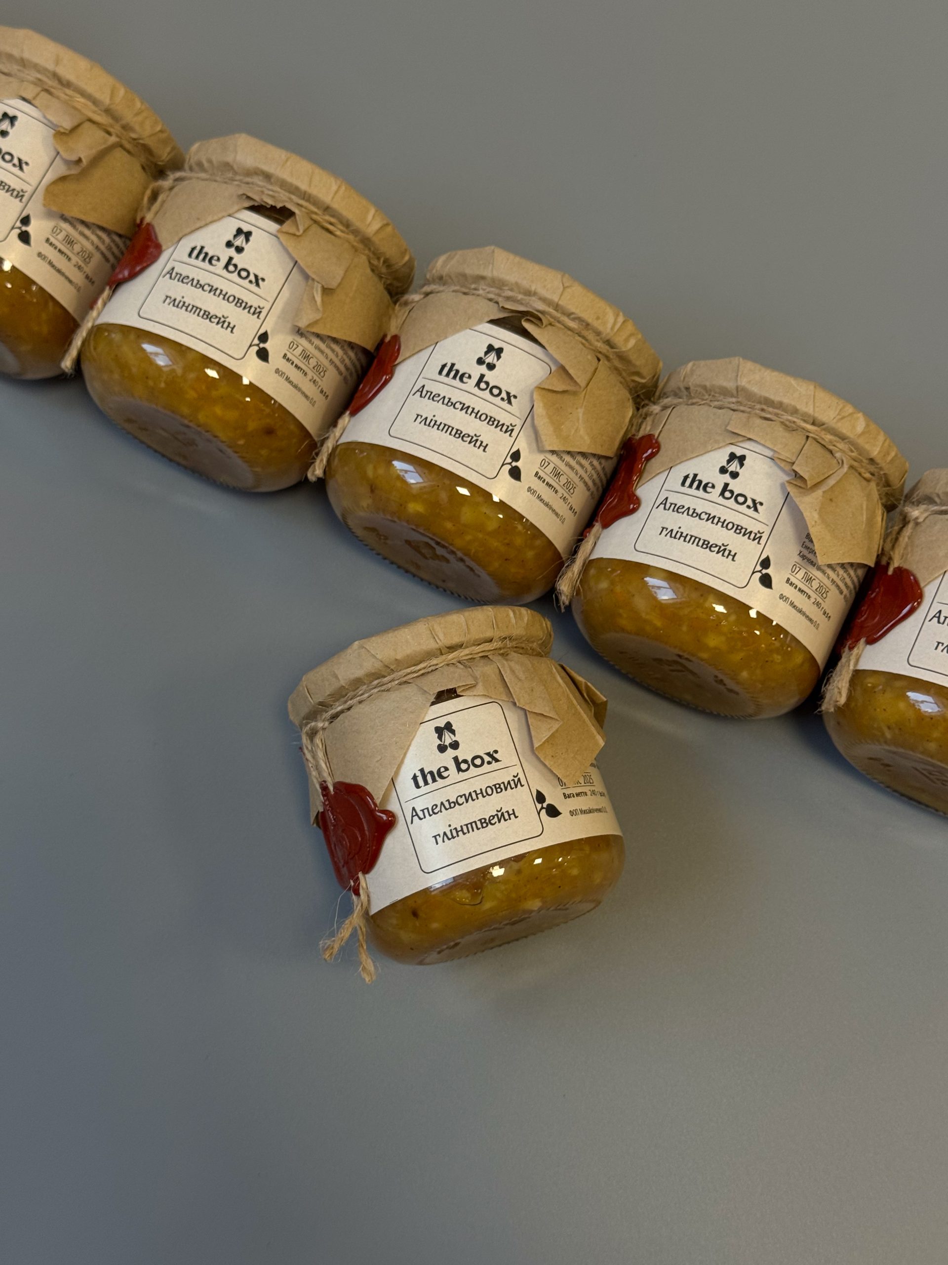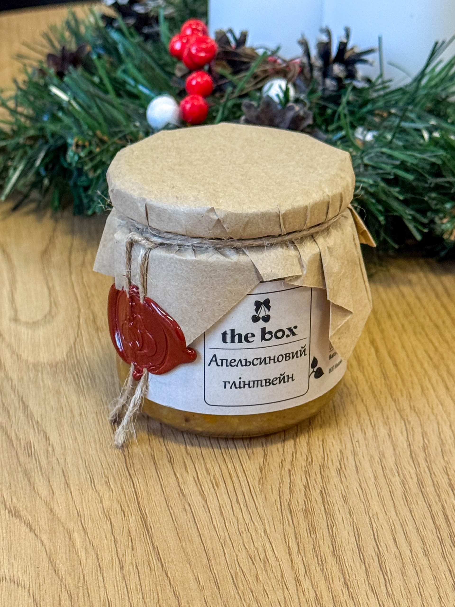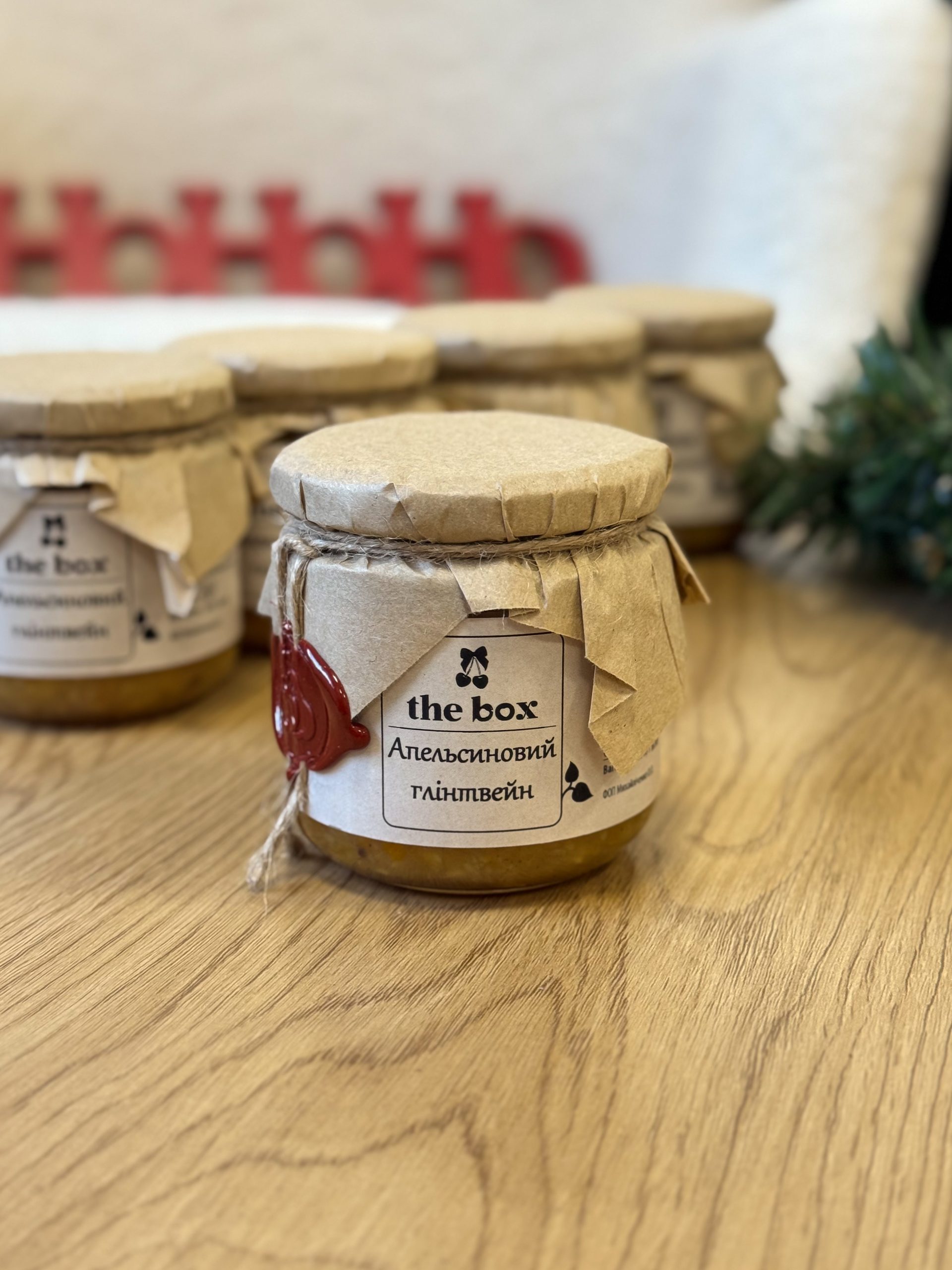 Апельсиновий джем у красивому, святковому оформленні з сургучевою печаткою. Оновлене пакування “Апельсинового глінтвейну” містить новий, фірмовий логотип THE BOX. Універсальний подарунок і доповнення до смачного подарункового набору, адже кожен із нас буде щасливий отримати такий вітамінний смаколик! Джем чудово доповнять горішки, цукерки, шоколад, кава та інші смачні товари на нашому сайті.