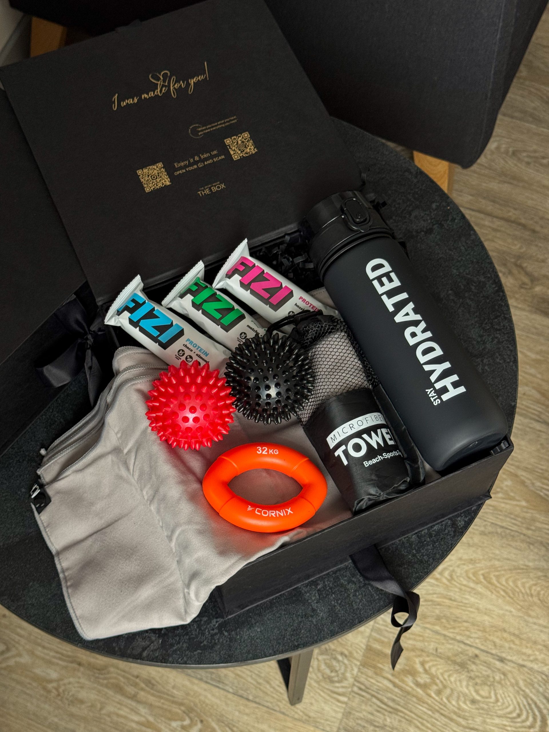 Маєте друзів, які люблять рух і цінують здоровий спосіб життя? Цей однойменний подарунковий набір для фітнесу підійде просто ідеально! Подаруйте своїм близьким практичний та функціональний бокс точно стане у нагоді кожному, хто віддає перевагу активному відпочинку, тренуванням у залі та корисному харчуванню. Цей набір – це смачна доза протеїну та усе для підтримки фітнес-настрою: в одній, лаконічній, чорній коробці від THE BOX.