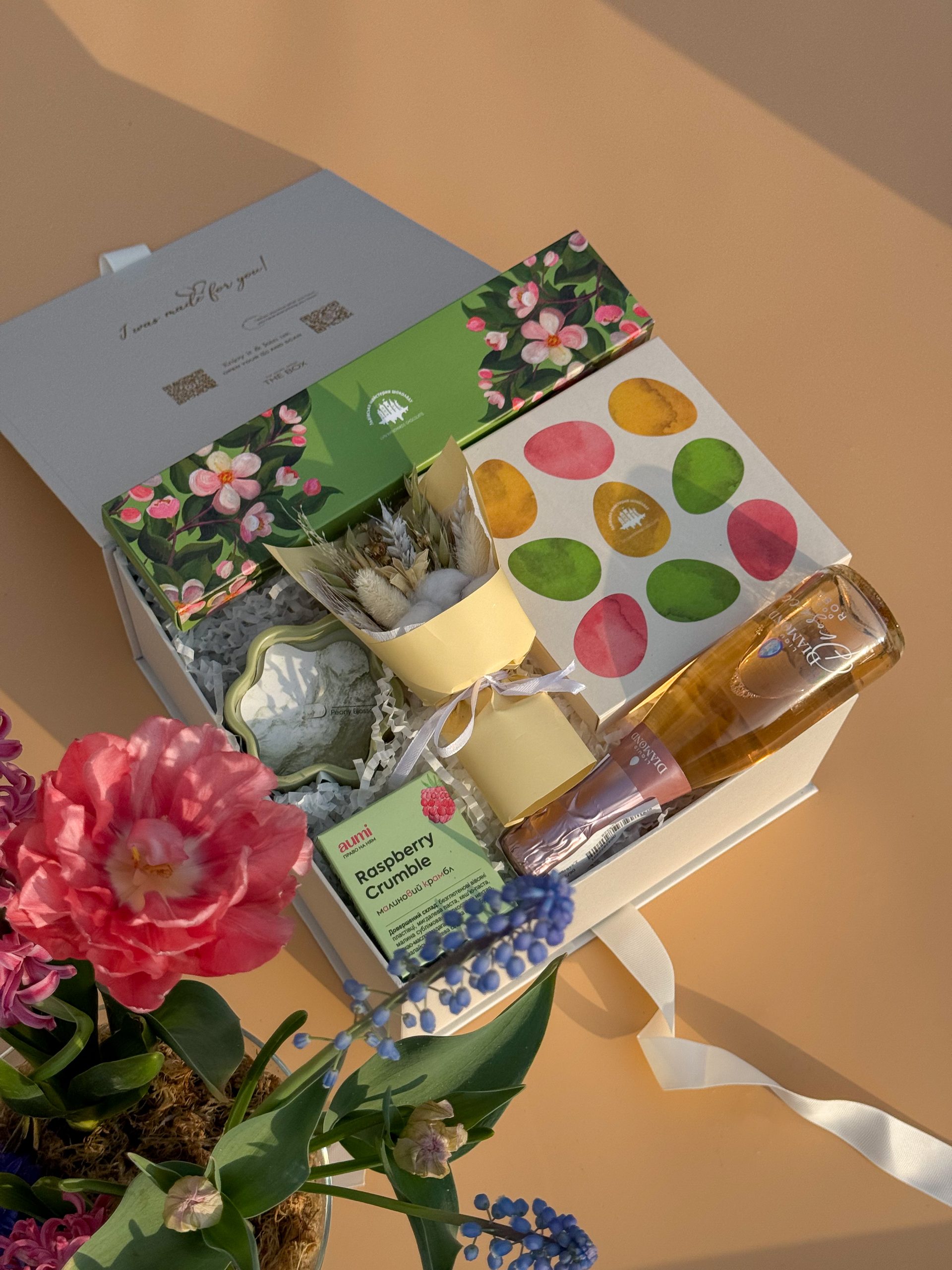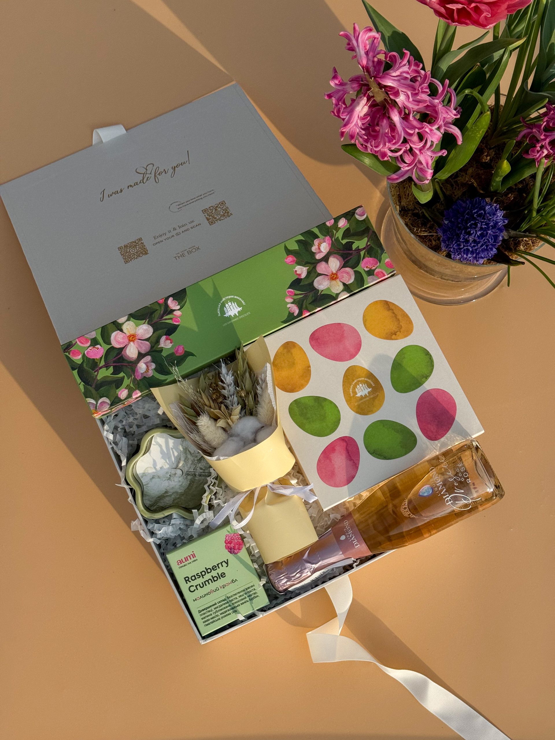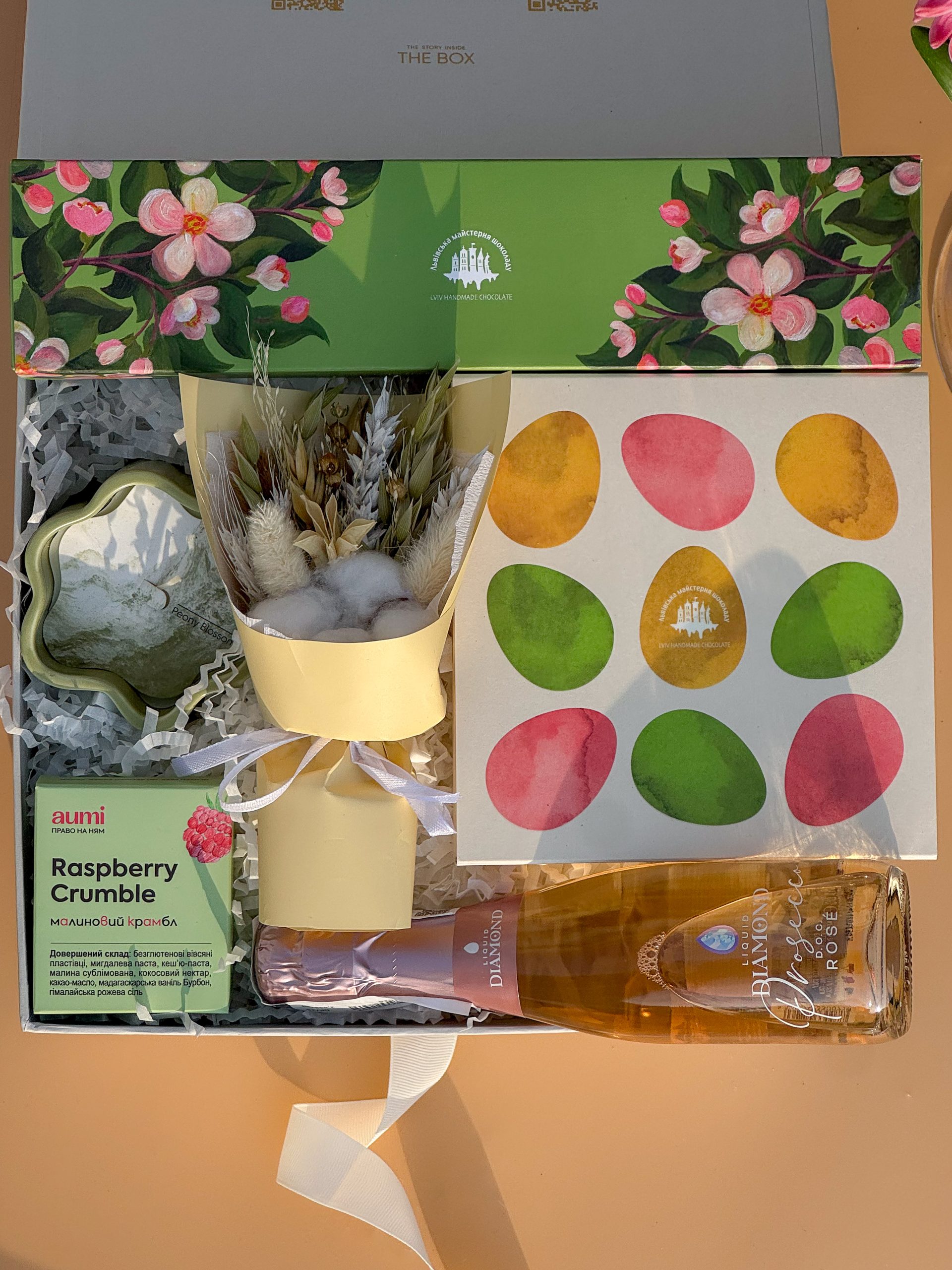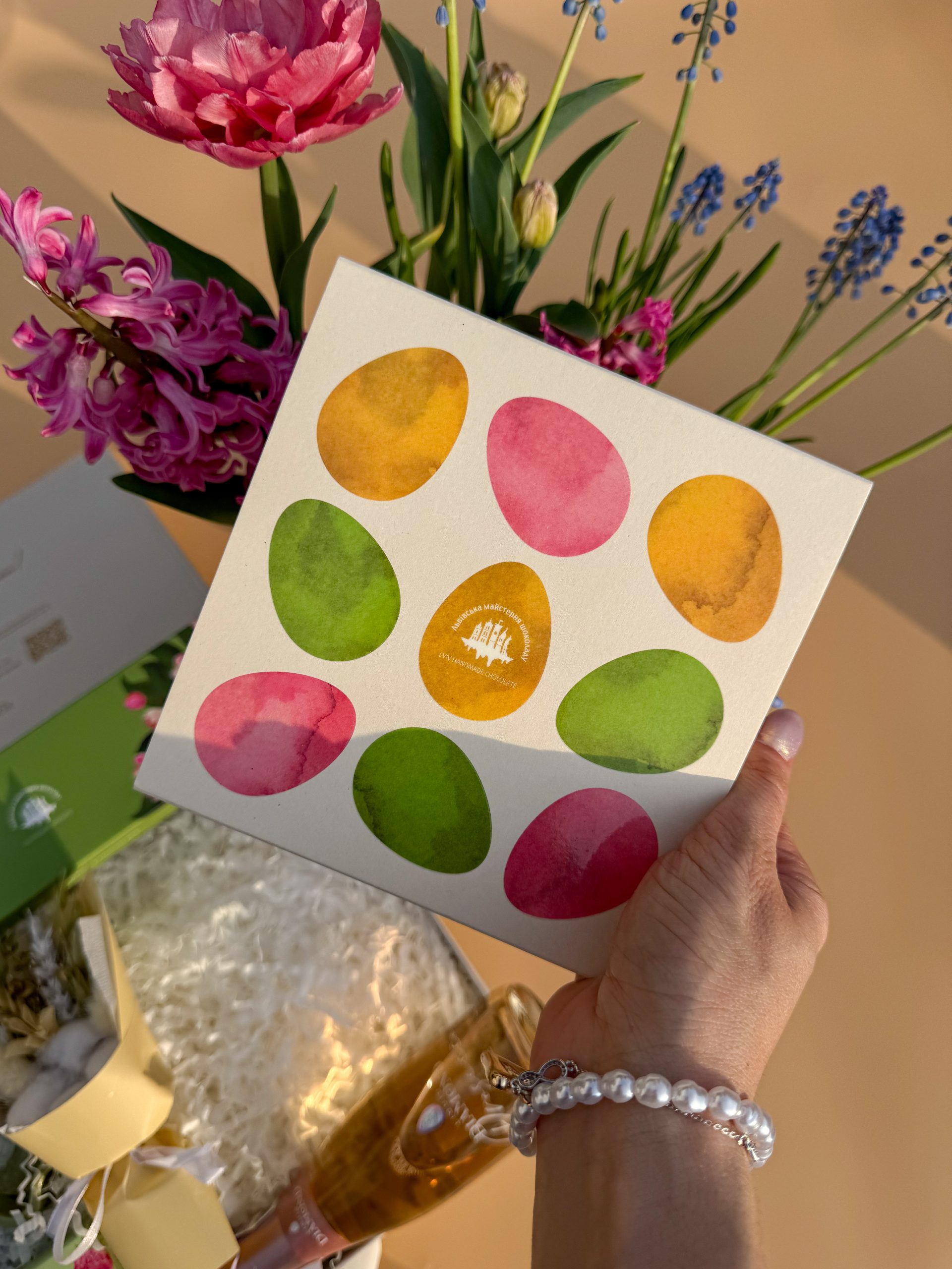 Великодній подарунковий бокс HAPPY EASTER — це світла історія про весну, тепло і нові початки, яка наповнює дім затишком і радістю! У цій стильній. квітневій композиції зібрано все, що створює атмосферу свята: вишукані солодощі, ароматна свічка, ніжний декор і святкові елементи пакування у вигляді кольорових крашанок, що символізують оновлення, життя та надію. Кожна деталь продумана так, щоб дарувати емоції — від першого відкриття коробки до останнього солодкого шматочка.