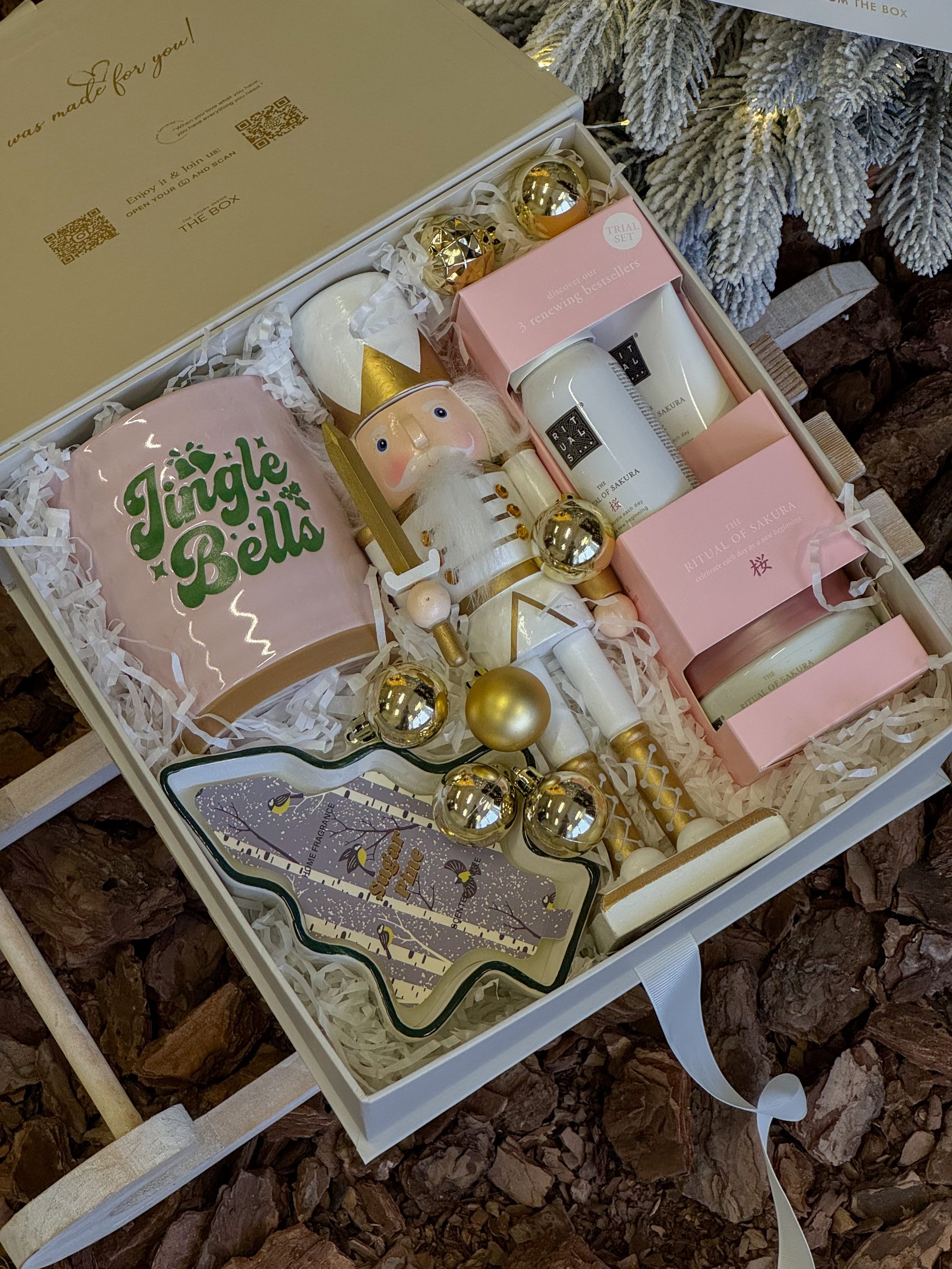 Подарунковий набір для неї за мотивами казкового “Лускунчика” – розкішний, зимовий подарунок для чуттєвих, поетичних, творчих та ніжних. Живильний догляд для тіла у поєднанні з елементами Різдва. Цей бокс – чудовий спосіб висловлення своїх почуттів та великої подяки. Справжній “Jingle Bells” очікує на ту, хто отримає цю магічну, кремову коробочку. Варто відкрити її – і ви опинитеся у світі рожевих фантазій та зимових свят.