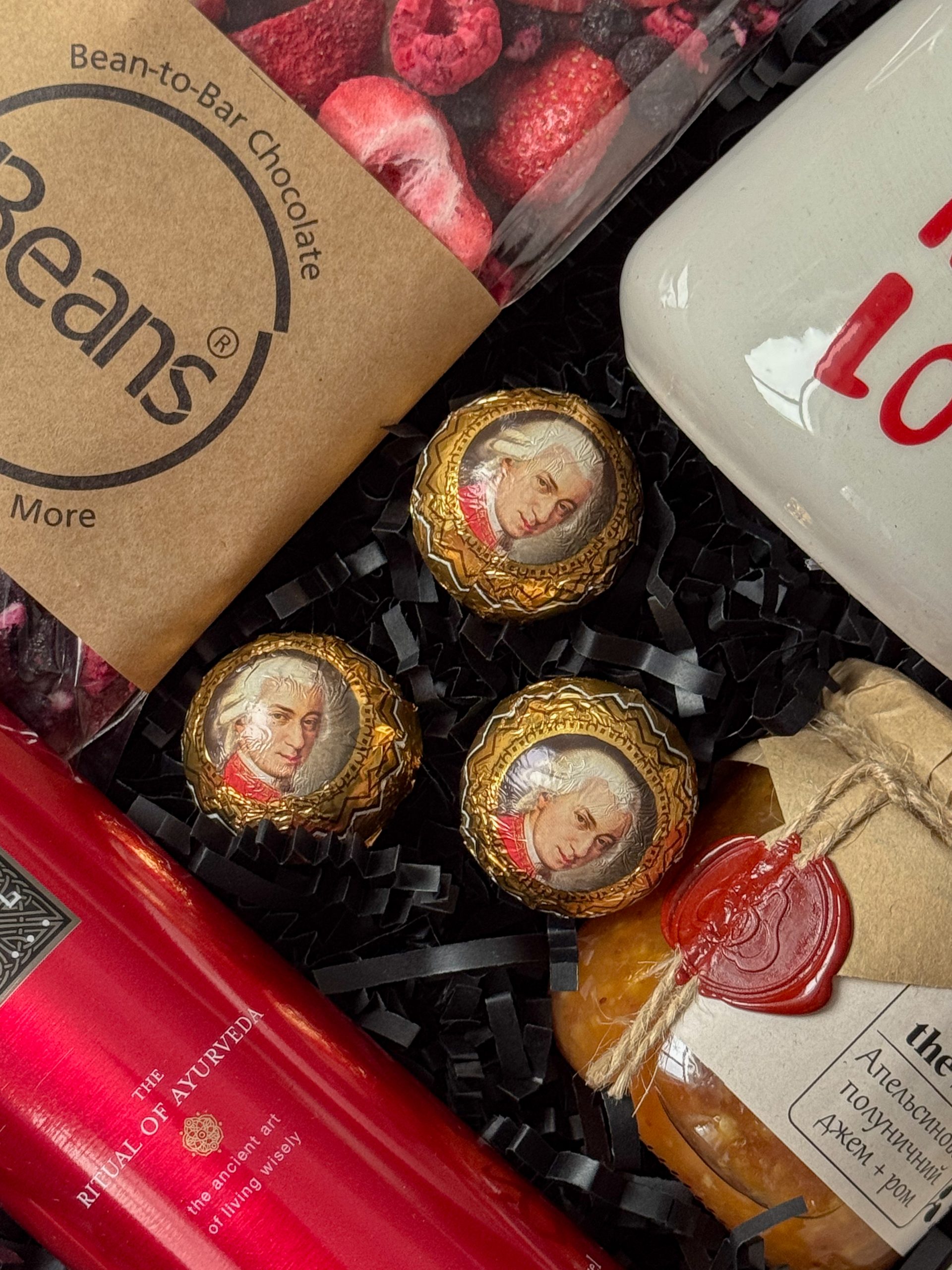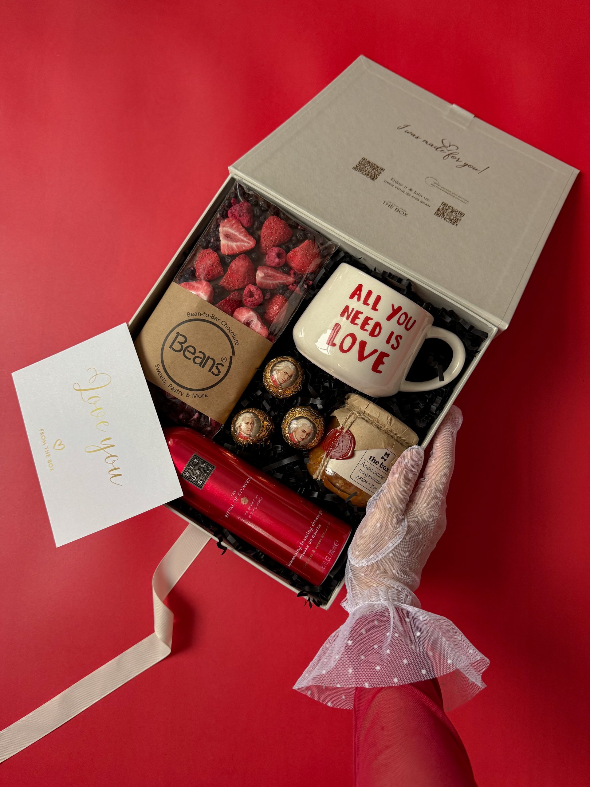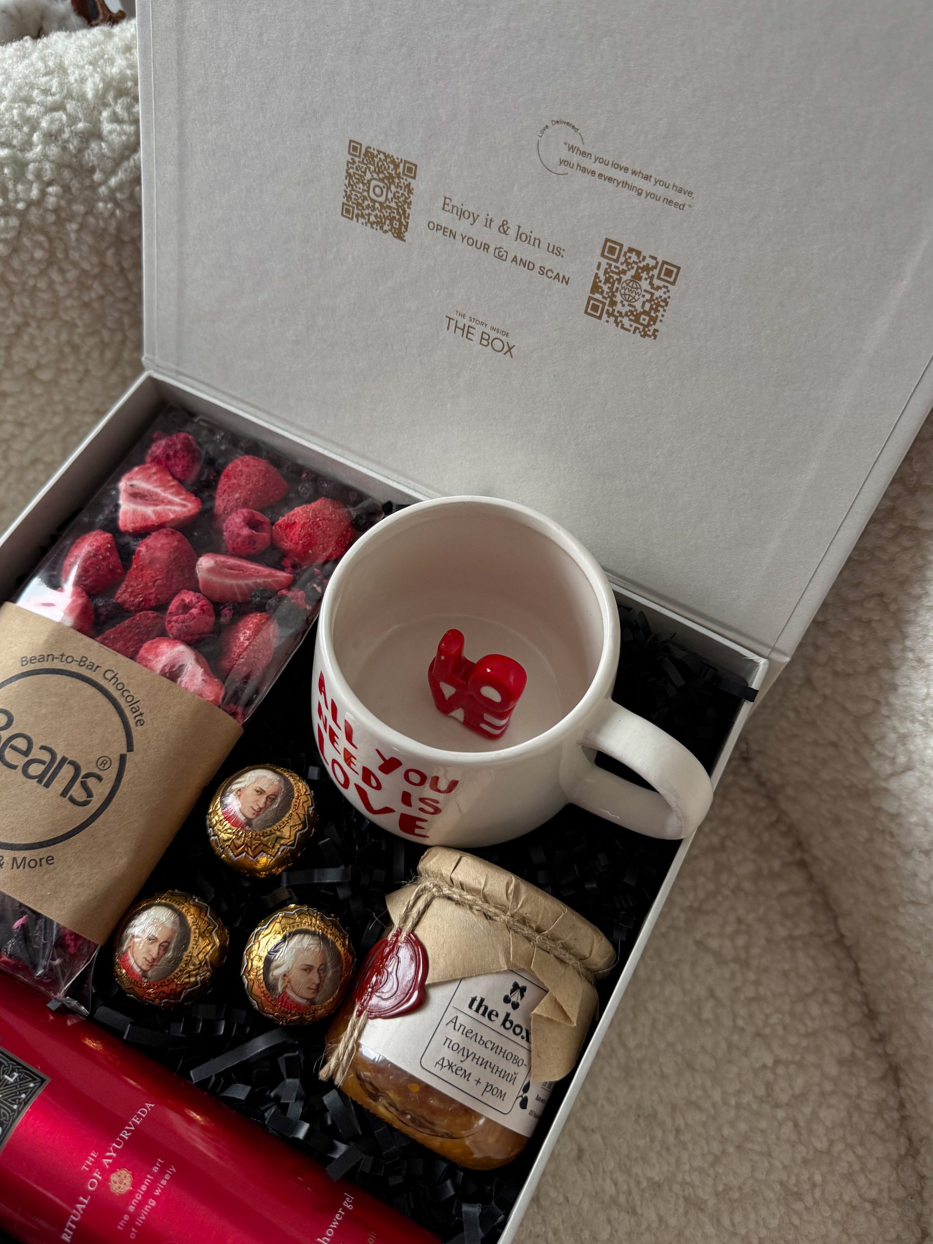 Незабутній, чуттєвий, вишуканий та поетичний. Так опише вас та, кому ви подаруєте цей боксик! 🙂 Ну і звісно ж саме ці слова здатні влучно передати усю красу цього подарункового набору. Улюблений, безпрограшний догляд для тіла, крафтова шоколадка з полуничками та горішками та чашка, яка нагадуватиме про вашу любов із кожним ковточком. А ще – наш фірмовий джем THE BOX у святковому оформленні та цукерки, які здатні нагадати: це більше, аніж просто емоція.
