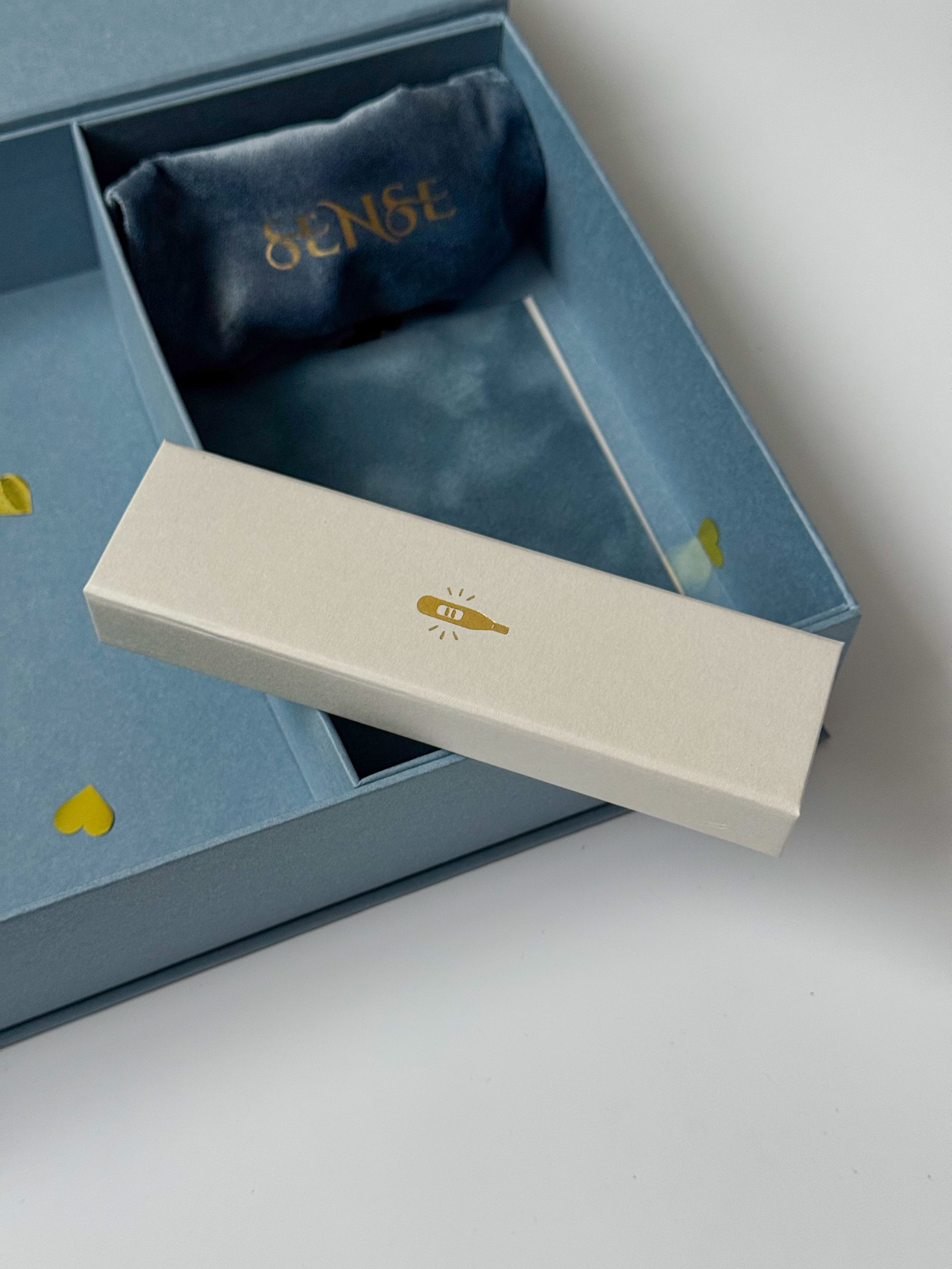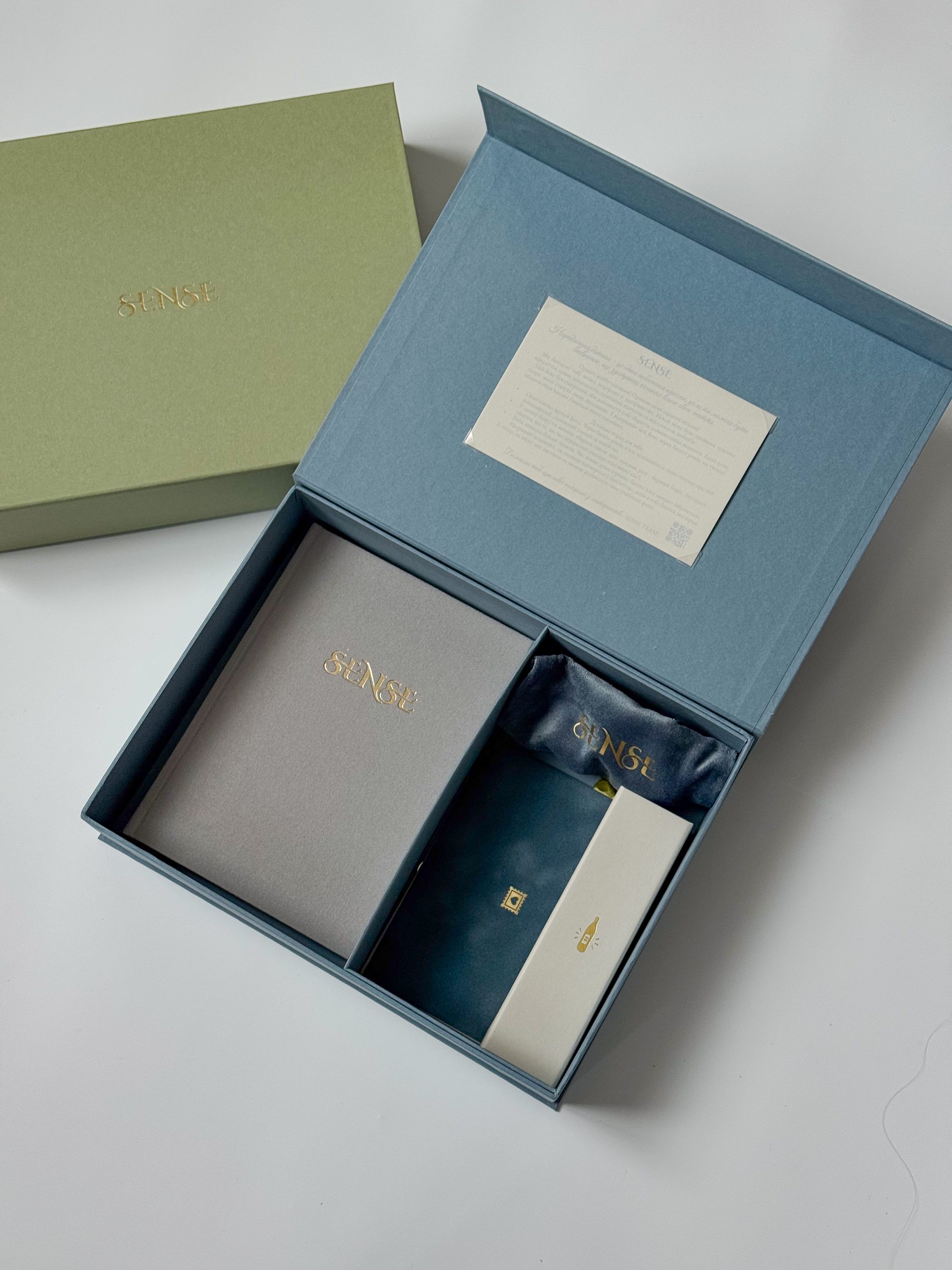 Бокс вагітності у небесному кольорі надії – це дивовижний партнерський проєкт SENSE та THE BOX. Ідеальний подарунок для вагітної подруги чи сестри. Привітайте близьку вам людину з найсвітлішим періодом у її житті чи оберіть цей набір для себе. Збережіть найтепліші спогади про період вагітності й очікування першої зустрічі з немовлям. Закарбуйте у пам’яті та на папері миті, коли під серцем зростало маленьке, нове життя. Минуть роки, минуть десятиліття…і ваша дитина скаже вам за усі ці спогади та за цю чарівну скриньку тепле “Дякую”.