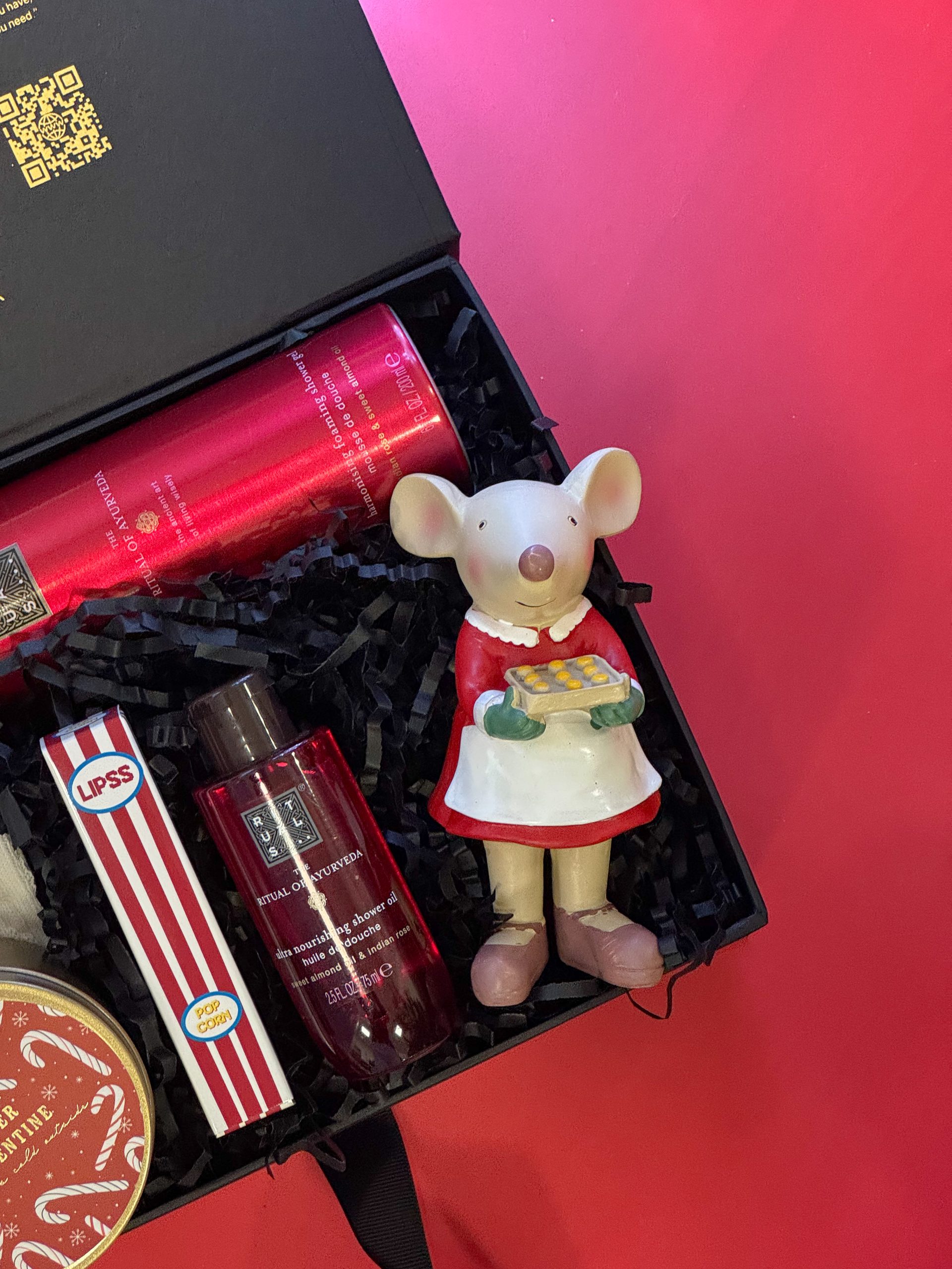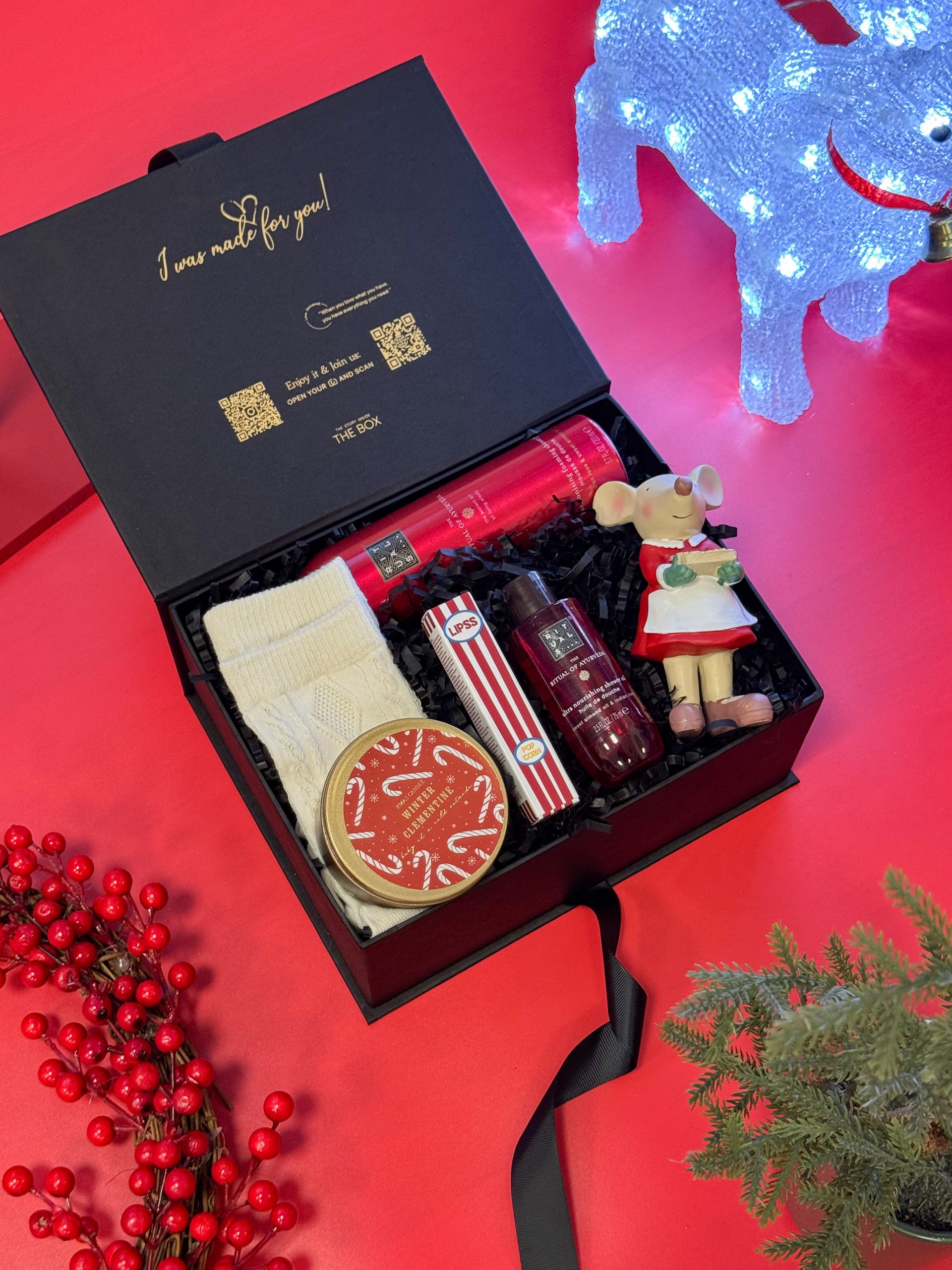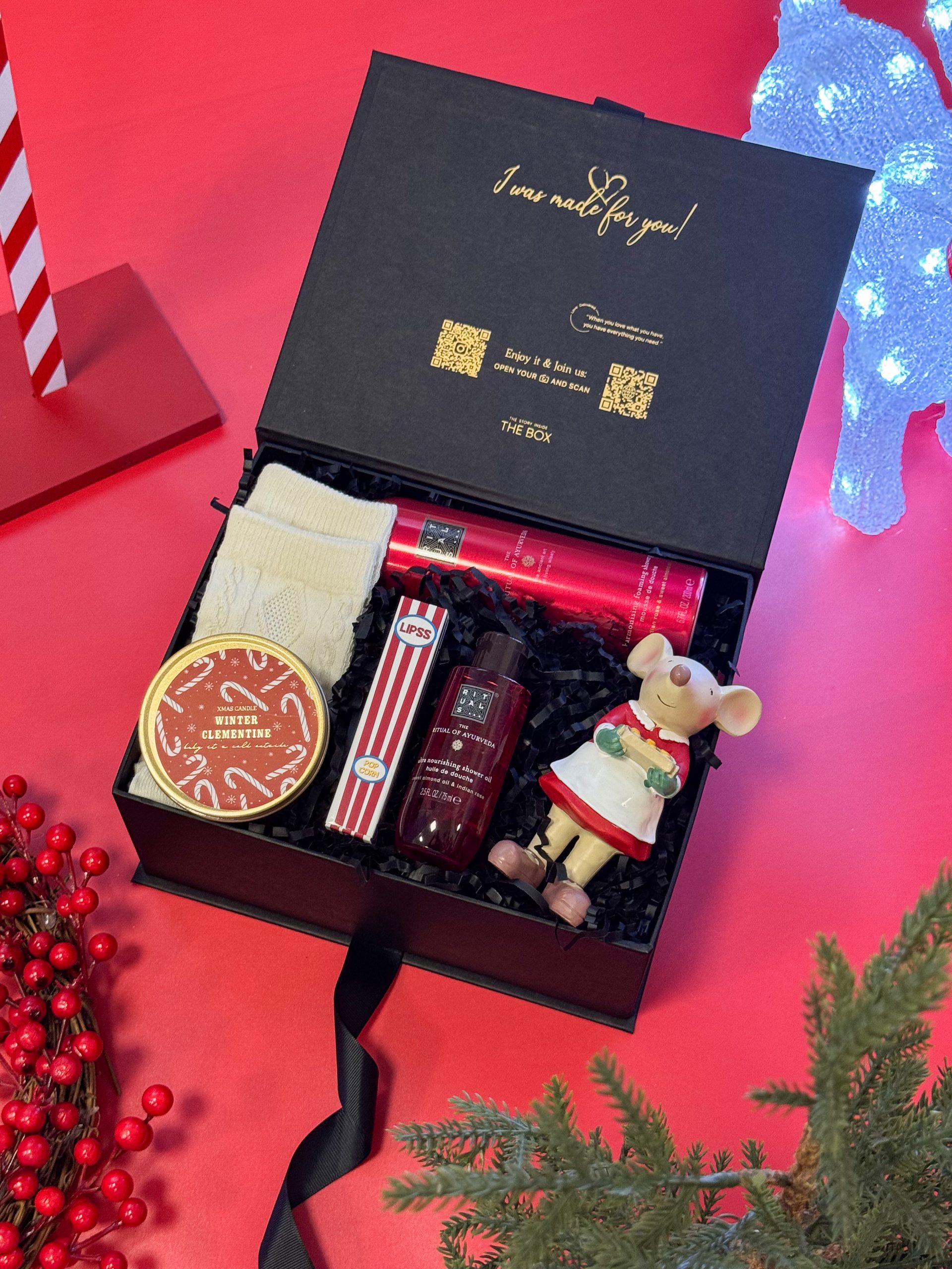 У цій коробочці ви знайдете усе необхідне для тихих риуталів краси. А святкова статуетка мишки щодня нагадуватиме про ваше тепло. Даруйте магічні відчутя разом із THE BOX!