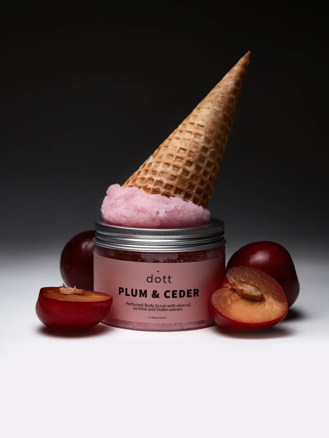 Парфумований скраб для тіла з олією оливки, сорбітолом та екстрактом липи PLUM & CEDAR Dott 350 мл