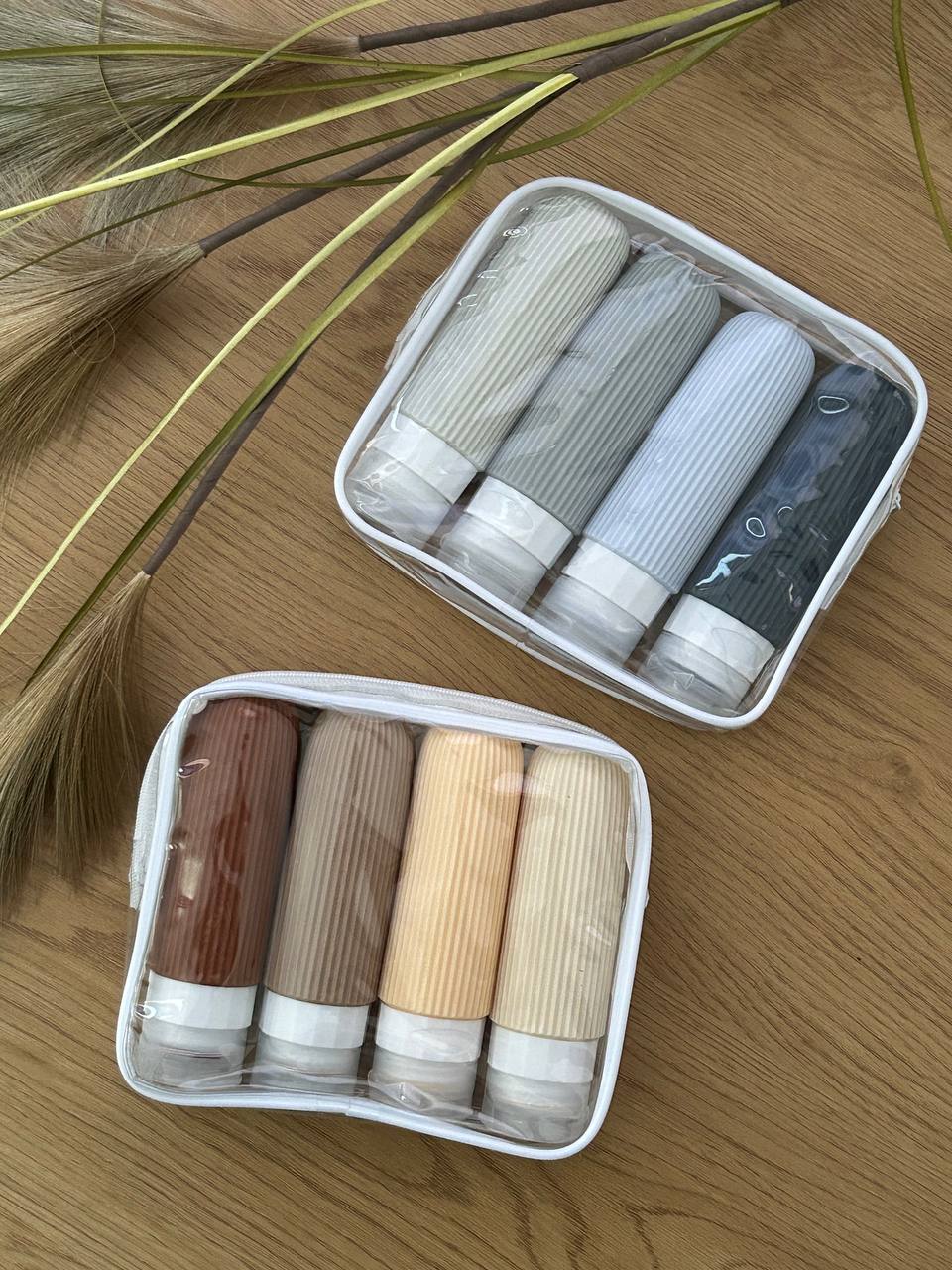 • Набір із 4-х силіконових ємностей для доглядової косметики у прозорому пеналі