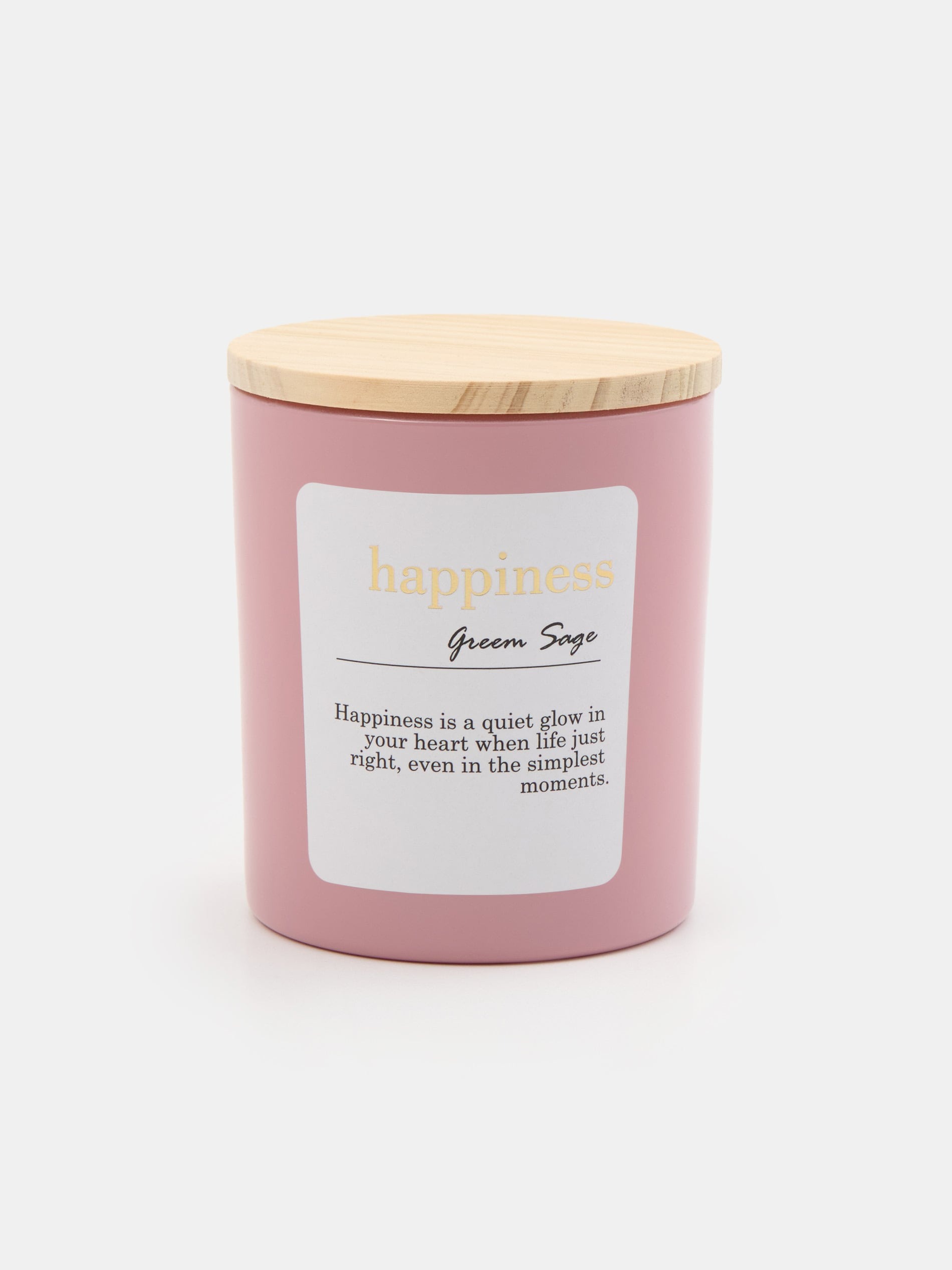 Ніжна ароматична свічка “Happiness” у рожевому оформленні з приємним ароматом затишку та легкості. Аромат нагадує чуттєвий, квітковий букет із цитрусовим шлейфом. Чудовий презент для неї, щоби нагадати, що вона і є – щастя! Ця свічка прикрасить будь-яку оселю та стане приємним елементом декору для вітальні, спальні чи кухні. Запаліть жагу до життя та насолодіться емоціями. Додайте до свого подарункового набору справжнє “Happiness”!