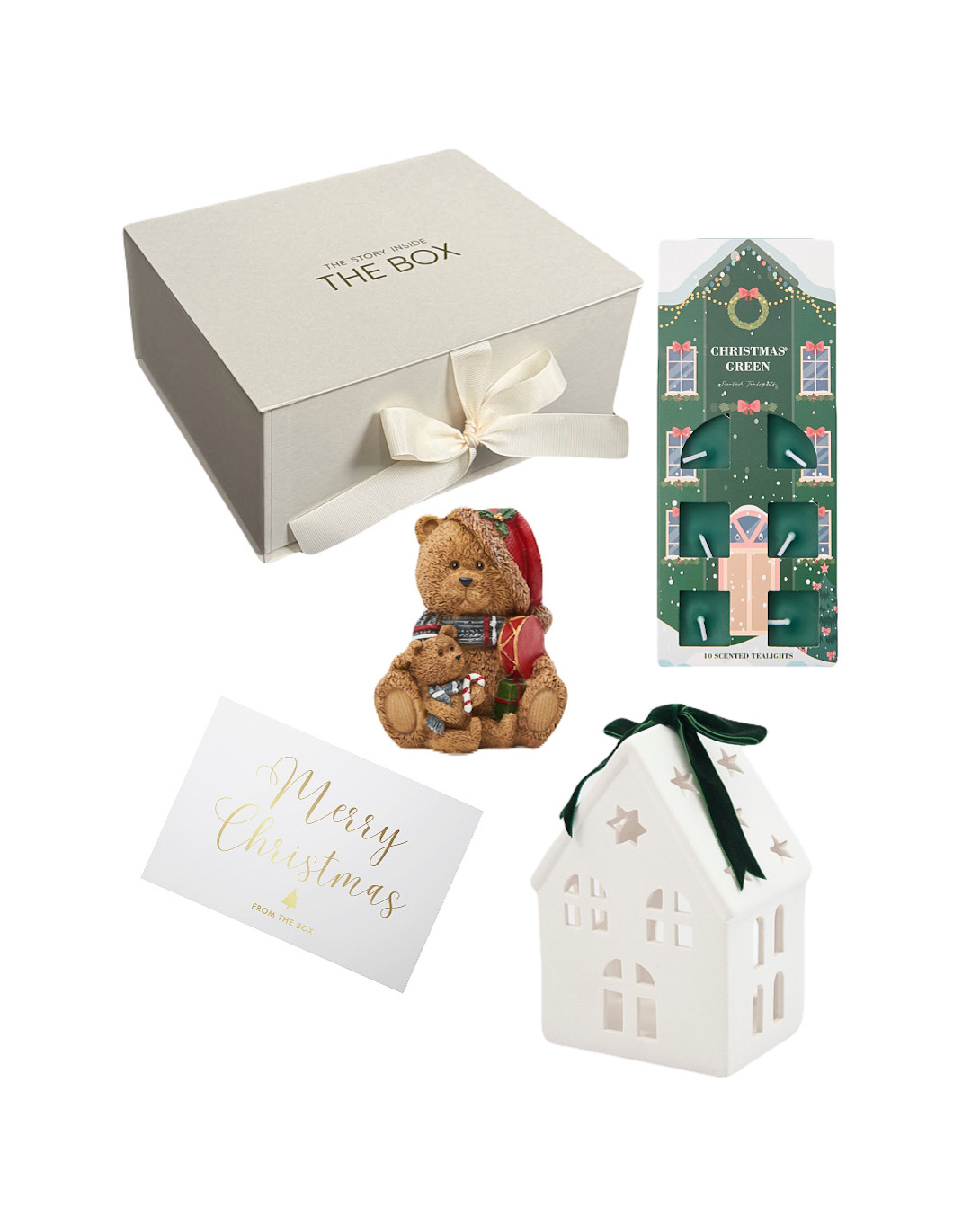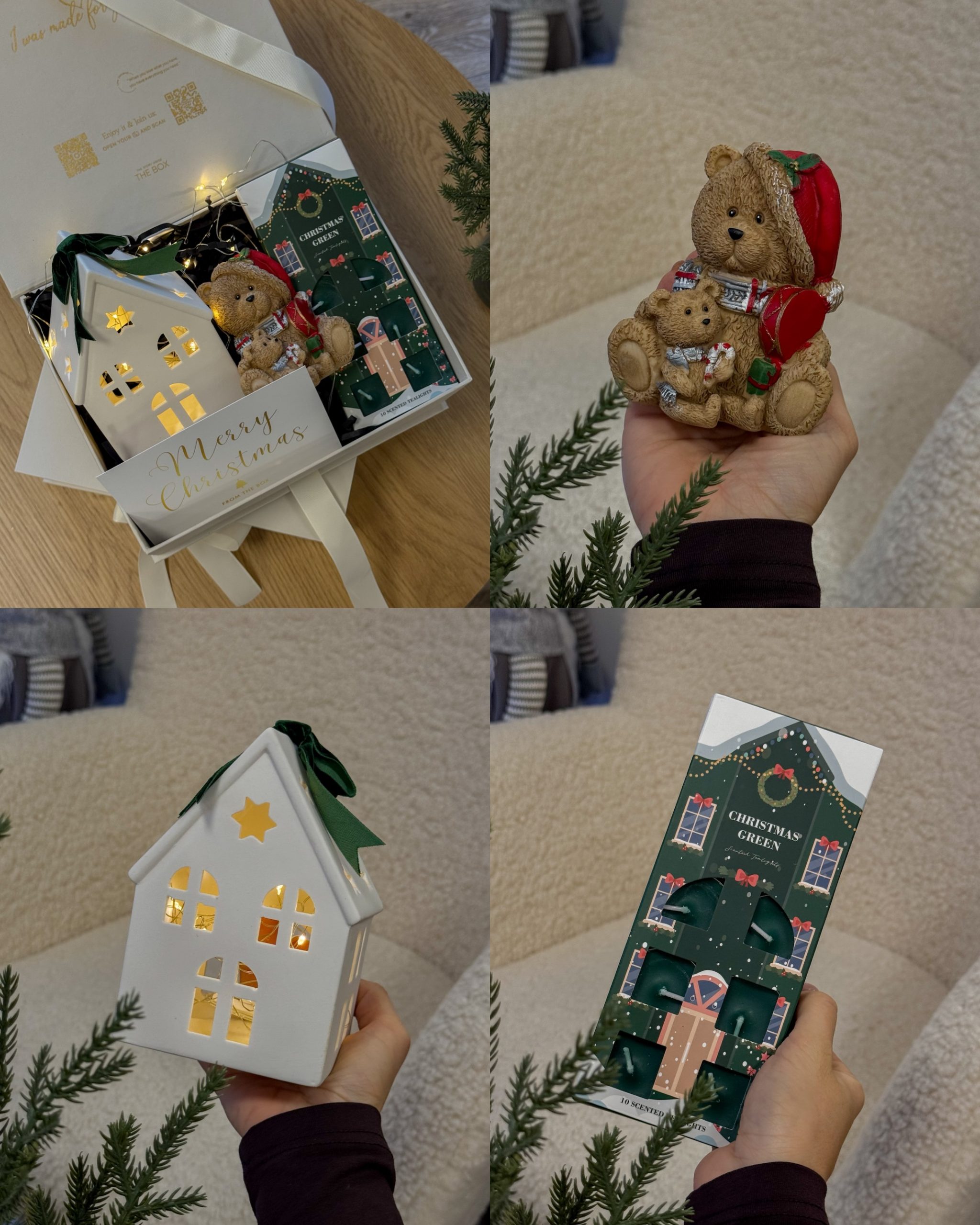 Створіть теплу атмосферу в оселі з нашим різдвяним подарунковим набором. Усередині ховається затишна, лісова казка: хвойні, чайні свічки, підсвічник у формі затишної хатки та різдвяний ведмедик, який стане чарівним акцентом будь-якого інтер’єру. Підійде для подруги, сестри, колеги, вчителя, мами і решти поціновувачів естетики та зимових традицій.